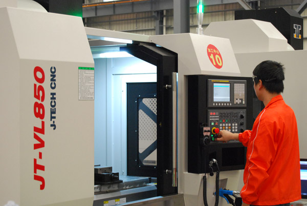 其中亚洲体育博彩平台排名高速立式加工中心JT-VL850拥有48m/min快速定位,轴最大加速度1.0G,有效缩短加工定位时间,提高加工效率;特别是配置了10000rpm的直结式主轴,确保高速切削的稳定性且无皮带之动力损耗;最高刚性攻丝转速:5000rpm,刚性攻丝倍速回退,有效提高刚性攻丝速度。该加工中心广泛运用于汽车零部件、摩托车/电动车配件等产品的有色金属加工需要,以及模具(如塑料模具、橡胶模具、金属模具等)、五金加工、工程机械、化工机械及配件的加工、铝及铝型材加工、适配器、油泵、摄影器材、其他机械行业零部件的加工主机等(如切割机、造纸机、纺织机、CNC等),确保高速、高精度、高稳定性的加工要求。