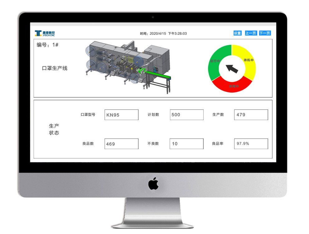特点2:高度智能化 互联网远程运维、监控和管理,云监控系统对设备进行实时监控口罩的质量、产量和设备状态,并实时反馈给管理人员,高度智能化为产品质量和产能保驾护航。