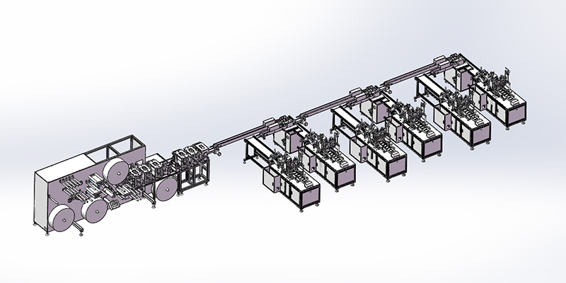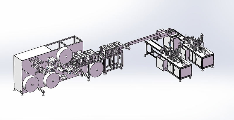 特点6:配置灵活 可根据需求,灵活添加后道点焊机、翻片机、自动包装机等设备组成口罩生产线。可实现传统超声波焊接耳线固定方式的口罩生产。