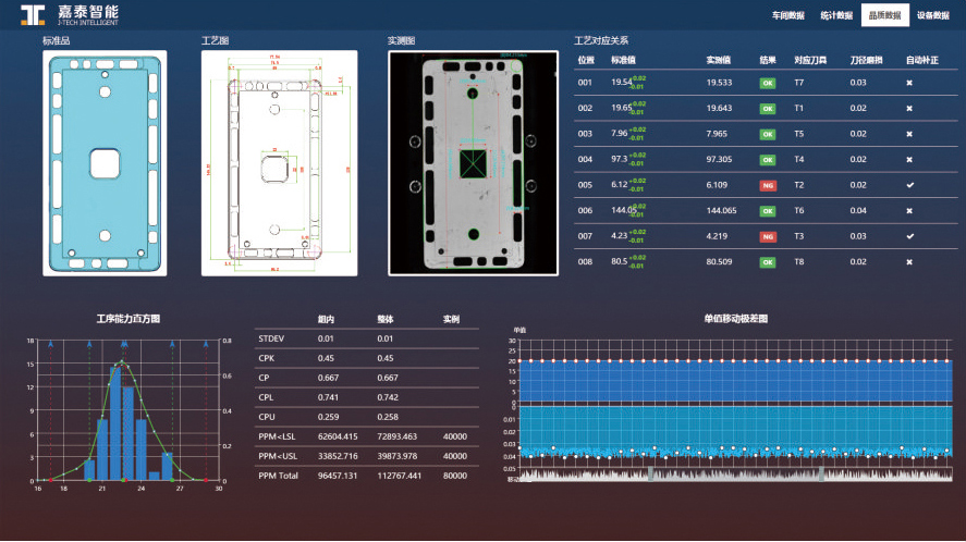 通过机器人与高速钻攻中心结合,设计适用工装和运送机组成金属手机外壳加工线,实现工件的自动上下料,并导入“在线检测”,实现良品与不良品的自动分类;同时,利用网络化的“云服务平台”,将机床连在一起,通过大数据,云计算、接口技术和智能应用来实现智能设计、智能计划、智能物流、智能加工、智能检验,较大程度挖掘数控设备潜能。